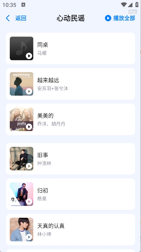 音乐大全免费版是一款精简实用的免费音乐播放器。在这里用户可以免费收听心动民谣、华语流行、国风流行等类型的音乐,并且支持最高无损音质播放,最近歌曲、常听、收藏等功能可随意使用,让每位用户都能享受到喜欢的音乐。有兴趣的朋友们赶紧下载吧。