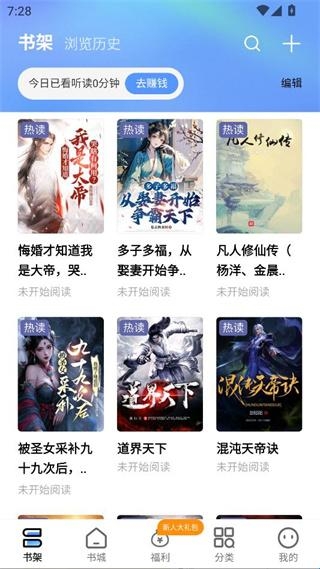 4、点击福利板块,可以让心用户注册就能得红包,还能每天阅读小说赚取更多的佣金。