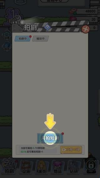 我要拍短剧是一款以拍摄短剧为题材的模拟经营游戏。玩家在这里将成为一名短剧拍摄的导演,通过开设一家演艺公司,并增加其名气,然后从招募演员开始,再到拍摄各种各样类型的短剧,最终吸引大量的观众前来观看。游戏里的设施非常全面,从签约到训练室都应有尽有,欢迎朋友们来本站下载。