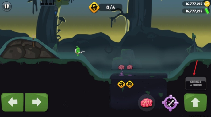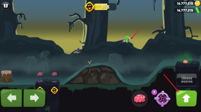 5、右下角射击键上面的数字代表或则子弹数,当没有了之后我们可以点击最右侧的按钮切换武器。