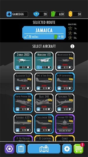 1、有各种飞机可以让玩家来选择飞行,简单的操作很容易就可以让玩家上手来完成任务。