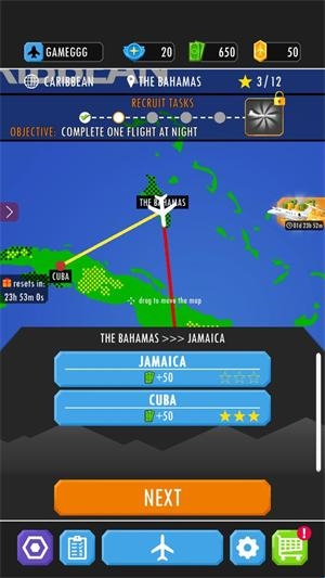 1、进入游戏后玩家需要选择不同的飞行任务,选好任务后点击next按钮。