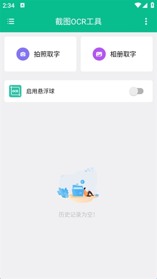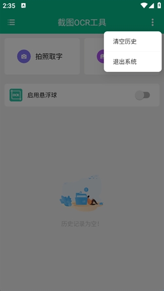 2、支持拍照取字或相册取字,还能开启悬浮球操作;