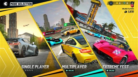 2、点击后可以选择游玩模式,分别有单人游玩,多人游戏,极限竞速三种模式。