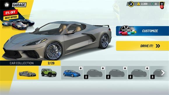 1、各种酷炫车型,还有各种酷炫赛车等着你的驾驶体验,不要停下来。
