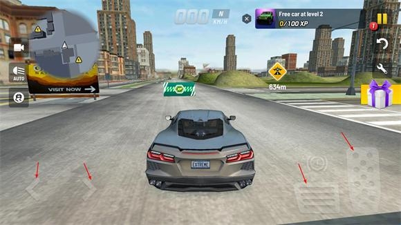 3、选择一个模式进入地图后屏幕右边控制前进和刹车,左边控制汽车的转向。