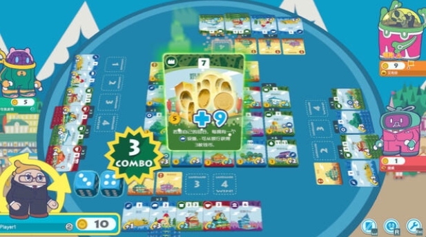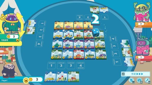 1、低对比度温馨配色,圆滚滚的Q版角色与建筑,长时间游玩不伤眼。数字版自动计算收益、高亮可购买项,消除实体桌游算错账的摩擦。