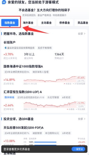 3、于指数基金板块浏览各类产品的投资信息。