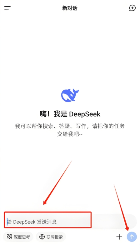1、打开deepseek APP点击中央的输入框,输入你心中的疑问;