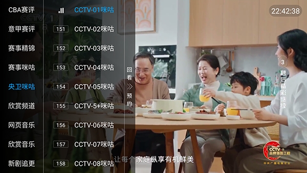 2、电视端用户按遥控器上的菜单选项可以唤起电视频道列表。