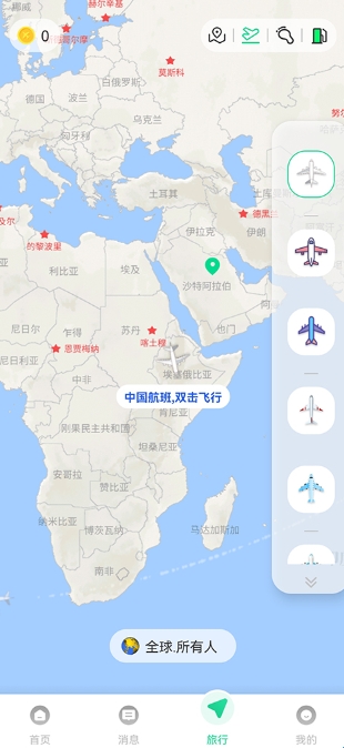 1、双击屏幕即可随机旅行,你可以飞往韩国、加拿大、美国等等地区。