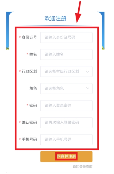 2、进入注册界面后,按要求填写相关信息,点击同意并注册即可。