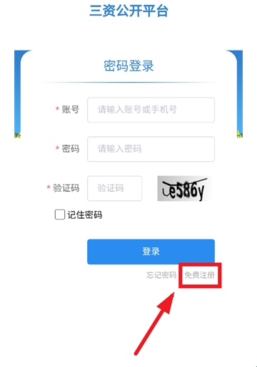 1、打开三资公开app,进入登录界面后点击免费注册;