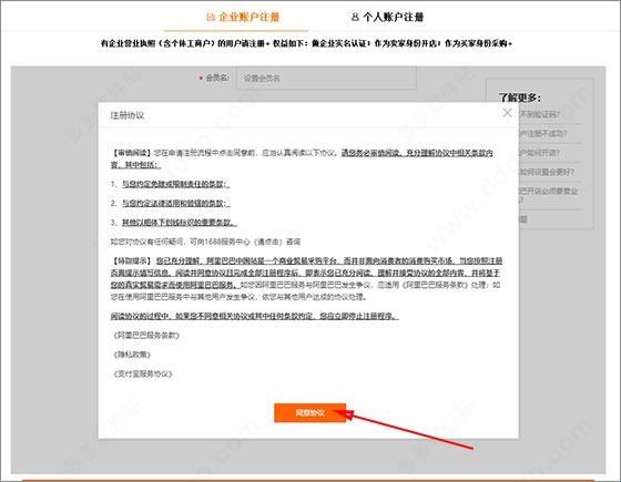 2、打开个人账号注册页面,点击“同意协议”;