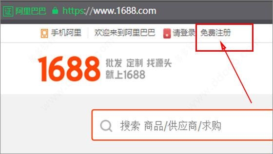 1、首先打开阿里巴巴网站,如下图。点击上方的“免费注册”;