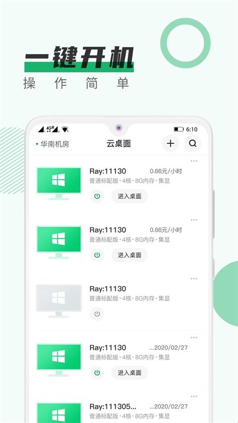 1、用户只需要在手机上打开app,添加云桌面,即可远程连接使用,随时接入退出,方便快捷!