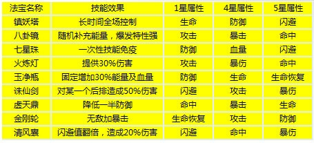 我们可以发现,玉玉净瓶和金刚轮,技能虽然厉害,但是却没有特别关键的属性!这就意味着——后面我们在强化法宝和器灵的时候,对于不同的法宝会有不同的强化思路。