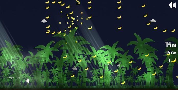 3、控制猴子在森林中进行摇摆前进,同时收集来自空中掉下来的香蕉等。